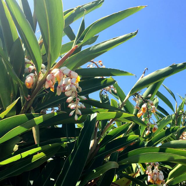 うりずんの季節(初夏)になると白い花を咲かせ、爽やかな香りで夏の訪れを知らせてくれる「月桃(げっとう)」。